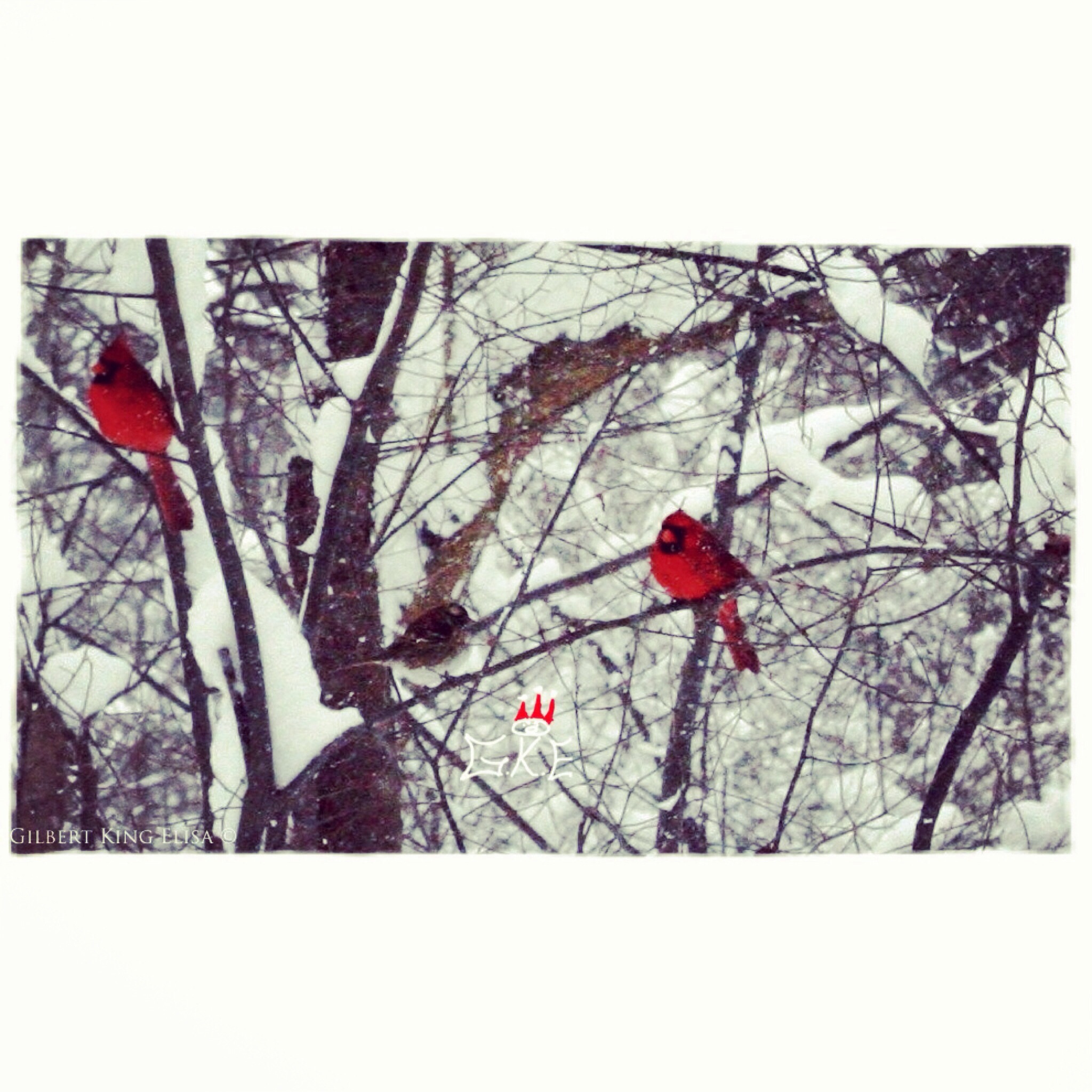 December 10, 2013 “Winter is coming” Two male cardinals and one female cardinal contrast their red jackets off the white snow. -GKE- Share this: Share on LinkedIn (Opens in new window) LinkedIn Share on Tumblr (Opens in new window) Tumblr Email a link to a friend (Opens in new window) Email Share on X (Opens in new window) X Share on Facebook (Opens in new window) Facebook Like Loading...